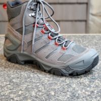 ALL OUT BLAZE VENTILATOR MID WATERPROOF FEATURES • Waterproof leather and mesh upper • Molded TPU external heel counter for added stability • Bellows tongue keeps out debris • Breathable mesh lining • Soft E-Foam Midsole, I-Tech harder top sheet • 6mm drop/15mm heel cushion/9mm forefoot cushion • Vibram® TC5+ outsole • Hollowed lugs for lightness • 5mm lug depth • Weight: 1lb 8oz