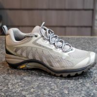 Merrell ALL OUT BLAZE AERO SPORT FEATURES • Merrell Omni-Fit™ lacing System provides a precise, glove-like fit • Bellows tongue keeps debris out • Molded TPU heel counter for added stability • Breathable mesh lining • Vibram® TC5+ outsole • Hollowed lugs for lightness • 5mm lug depth • Weight: 1lb 6oz